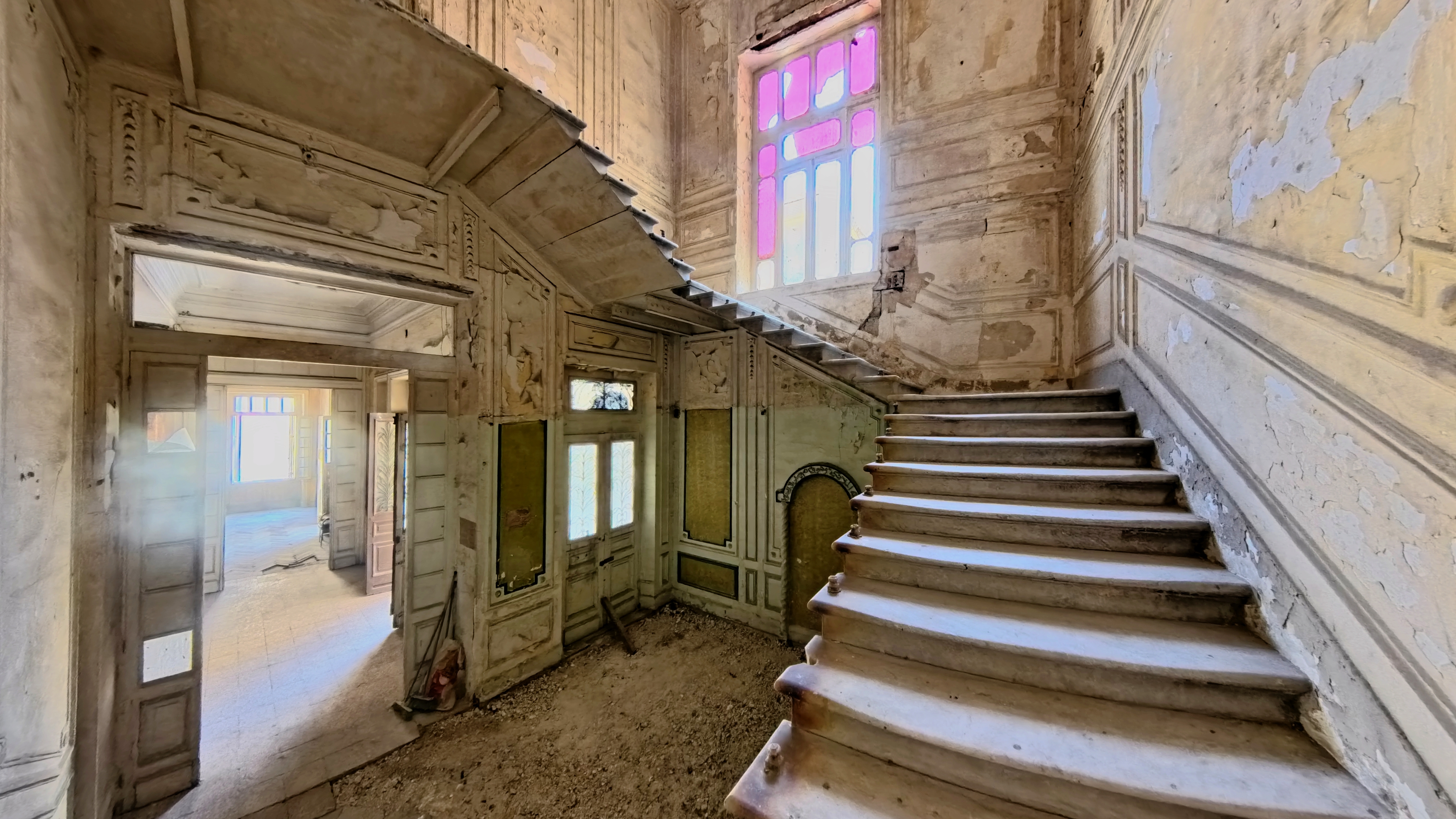 Vertical Circulation: Grand marble staircase—massive enough to integrate a lift without major structural work