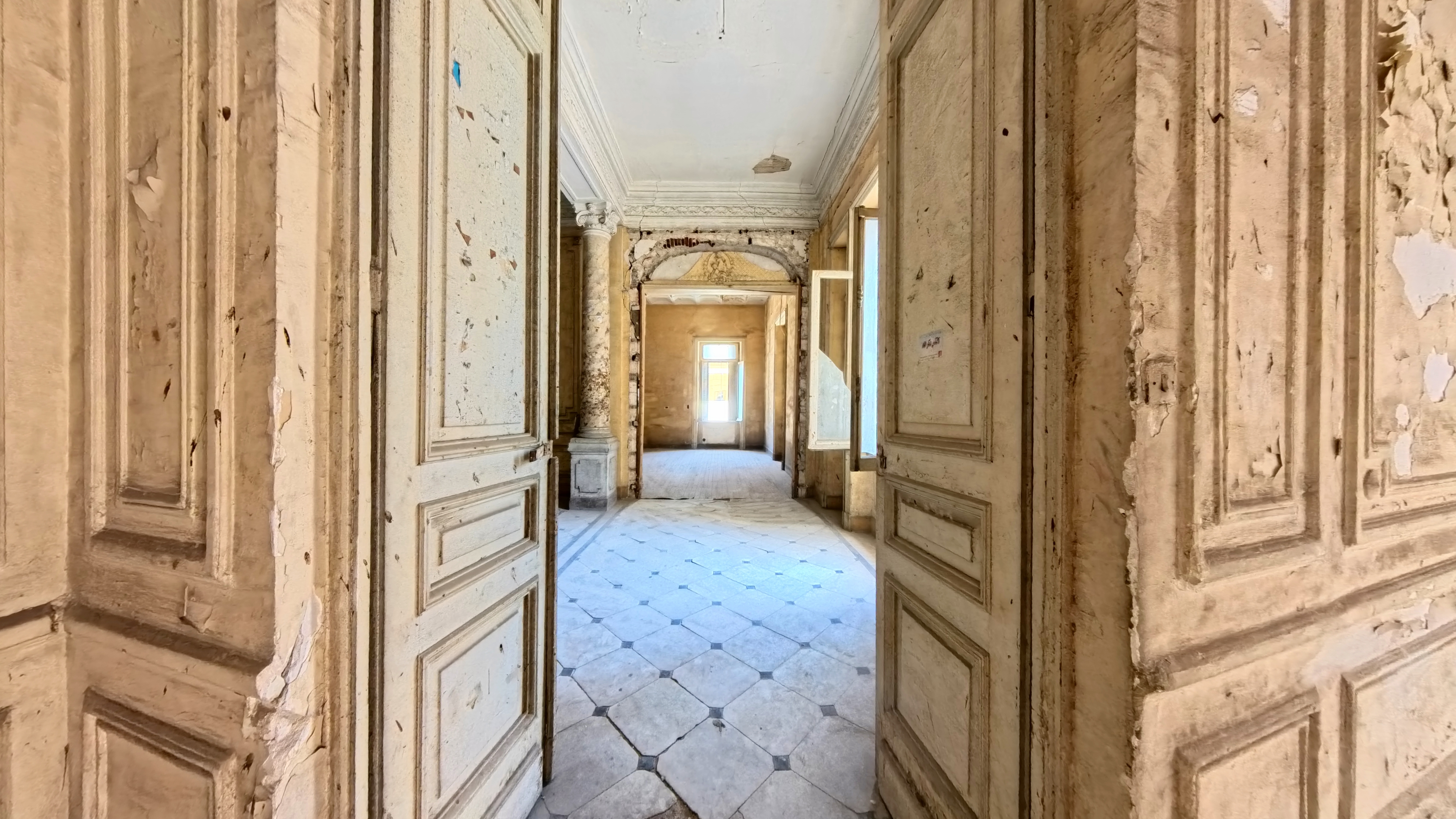 Heritage Landmark: Authentic Belle Époque details—Wrought-iron verandas, marble and parquet floors, stained-glass clerestory—await expert restoration